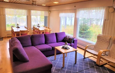 The main building of Lastu offers three different bedrooms for short-term rental, and one accommodation room is an atmospheric dugout. The main building features shared access to a living room, kitchen, two toilets, a washing machine, dryer, dressing room, shower room, and electric sauna. The lake shores are available for shared use by all tenants.