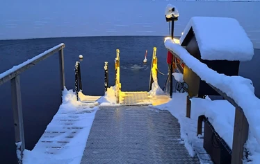 The swimming jetty is about 50 metres from the main building and approximately 70 metres from the smoke sauna.