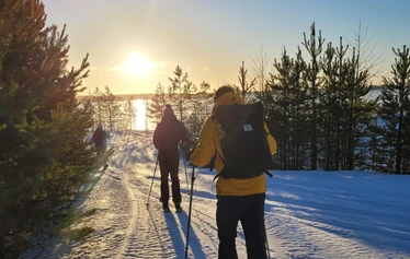 Guided glide snowshoe trip in the landscapes of Lake Puruvesi
