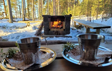 The snow covers holes and stones – let snowshoeing begin! A person who knows how to walk will easily learn how to snowshoe and will be able to enjoy the magic of winterly nature. Elevations, snow conditions, and personal speed will offer challenges for each of the hiker’s needs and desires. Snowshoeing represents the top of ecologic activity/exercise. The guides will teach you how to snowshoe and will lead you through the interesting and beautiful scenery of the wilderness of North Karelia. The price includes snowshoes, necessary safety equipment, and guides with their liability insurance. The hiking trip lasts a maximum of 2 hours, depending on the endurance of the group. After the trip, we will enjoy warm/cold drinks around an open fire at a cozy lean-to.